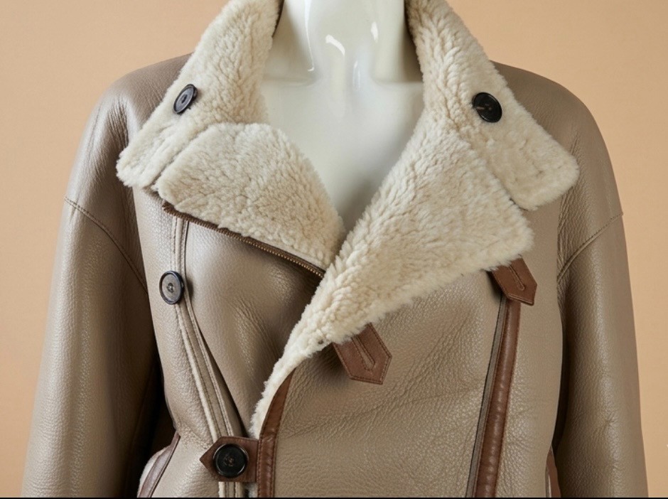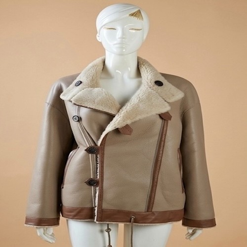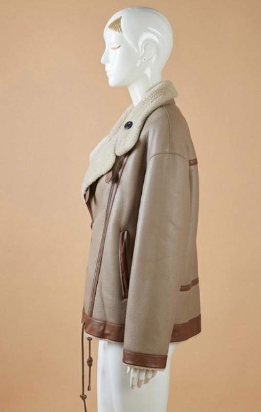 This jacket is primarily made of PU bonded with shearling, while the addition of buttons, drawstrings, and zippers gives it a unique style.
