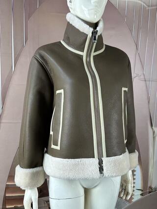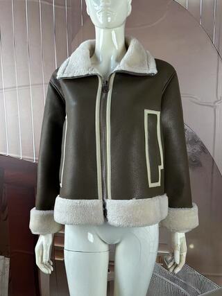 This jacket is made of PU bonded with shealing, and the color-blocking design highlights the fashion sense of this garment.