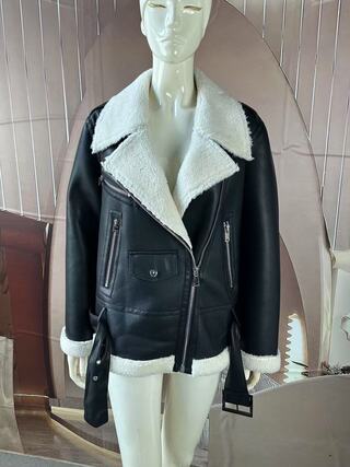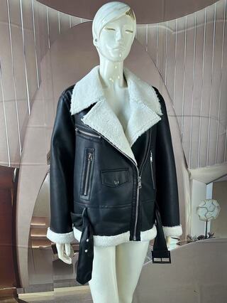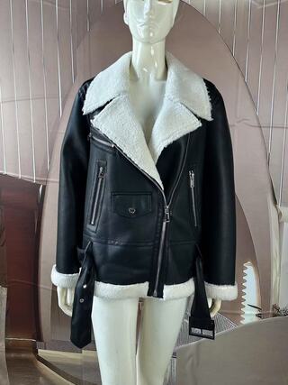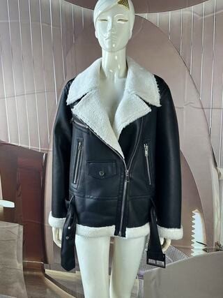 This jacket is primarily made of PU bonded with shearling while the addition of buttons, leather buckles, and zippers gives it a unique cool style.
