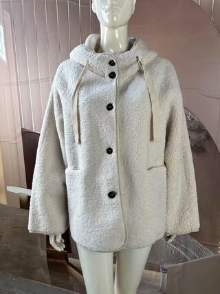 This jacket is made of SHEARLING with a sweatshirt-style design, exuding a youthful vibe.