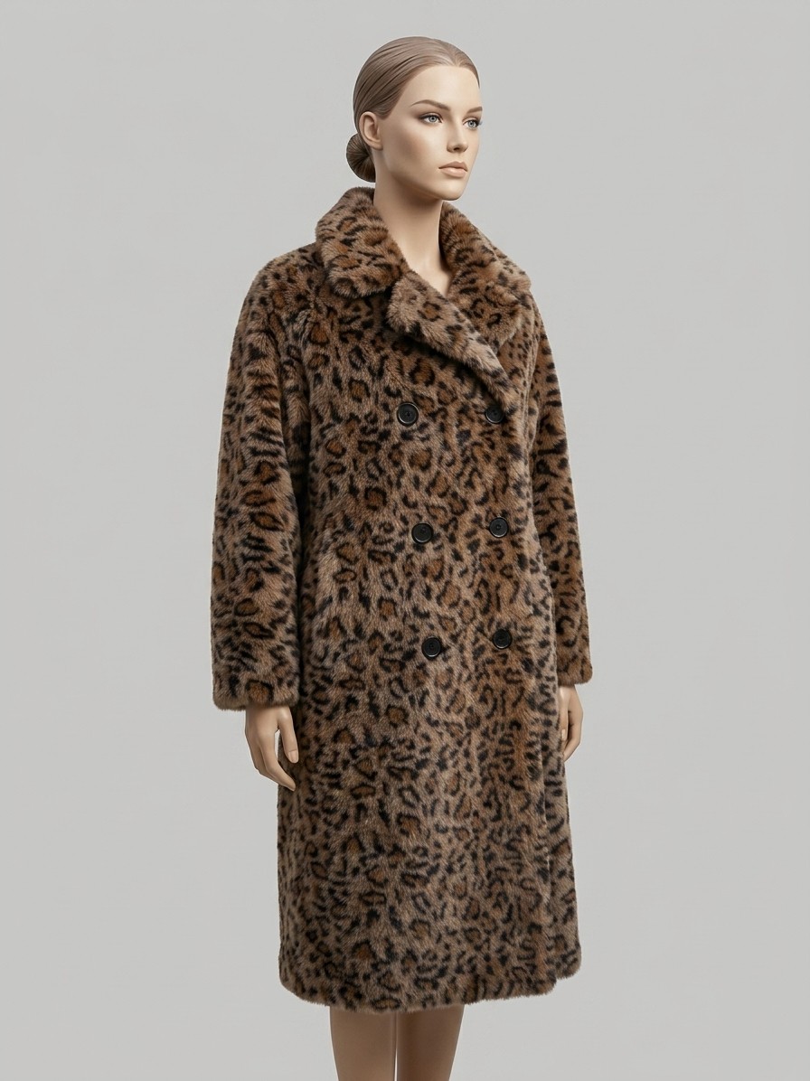 FAUX FOX FUR COAT WITH LEOPARD PRINTED